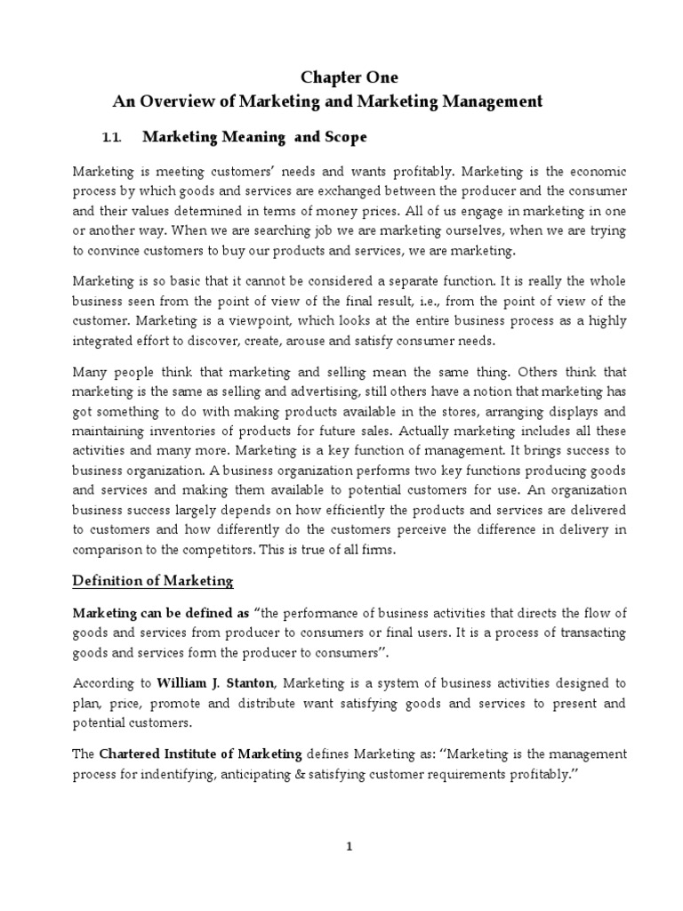 Chapter One An Overview of Marketing and Marketing Management