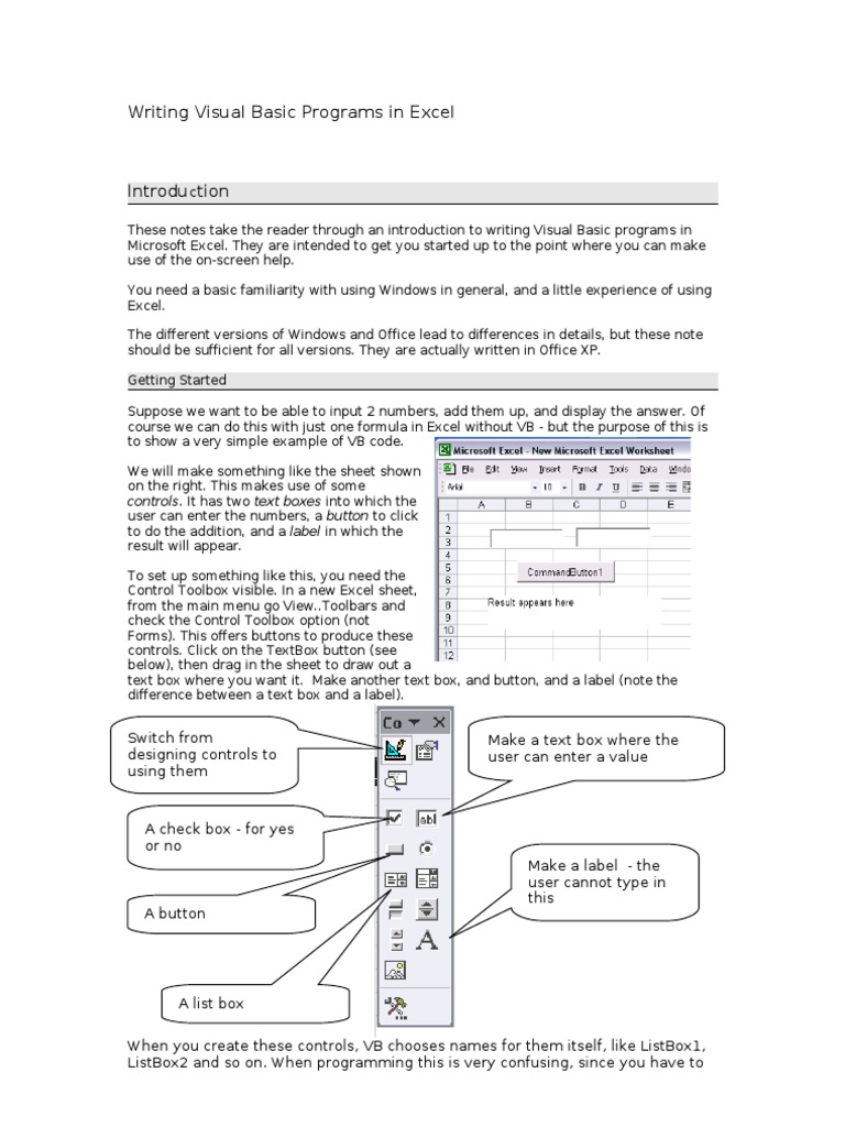 These notes take the reader through an introduction to writing Visual Basic programs in