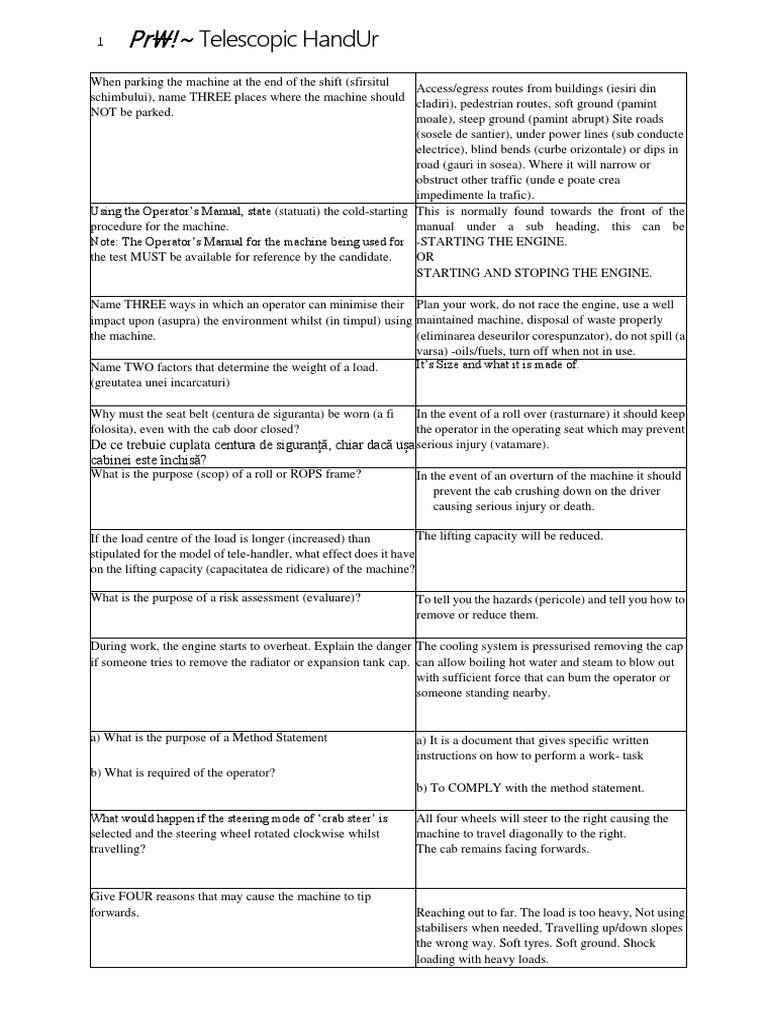 Give THREE reasons why it is important that a telehandler is You may not be able to get your forks in or out of the