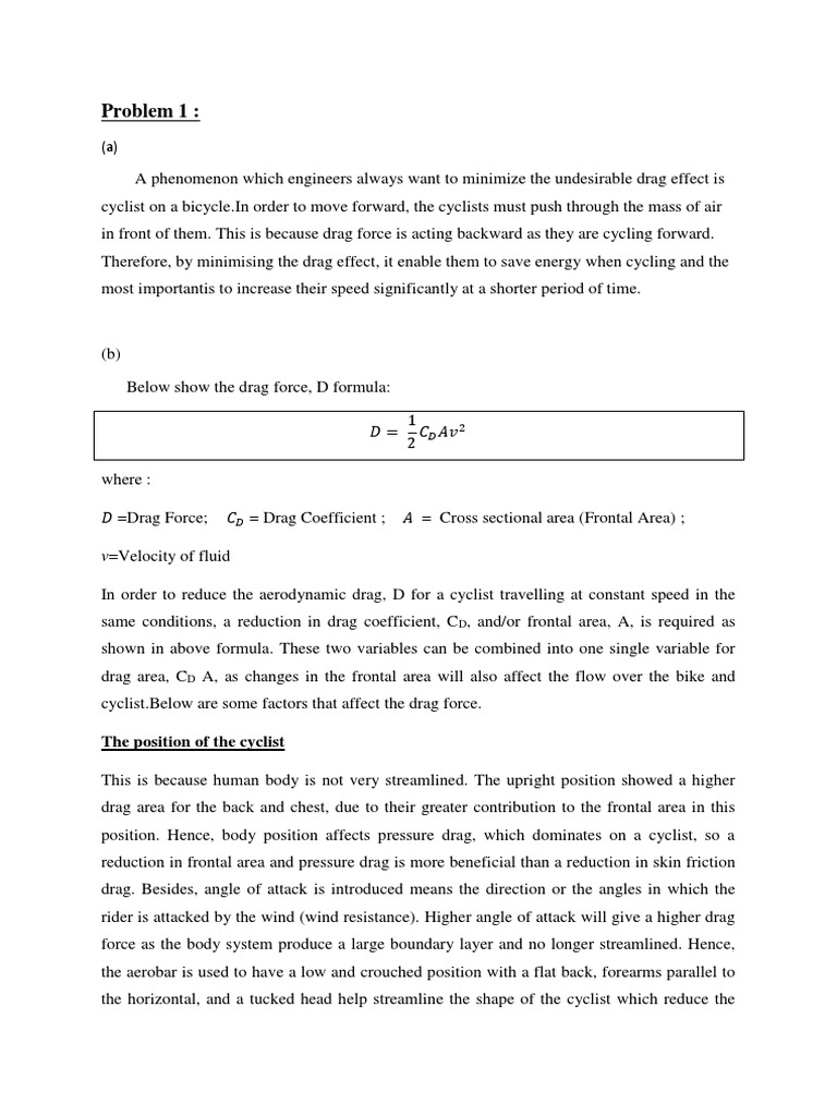 position. Hence, body position affects pressure drag, which dominates on a cyclist, so a