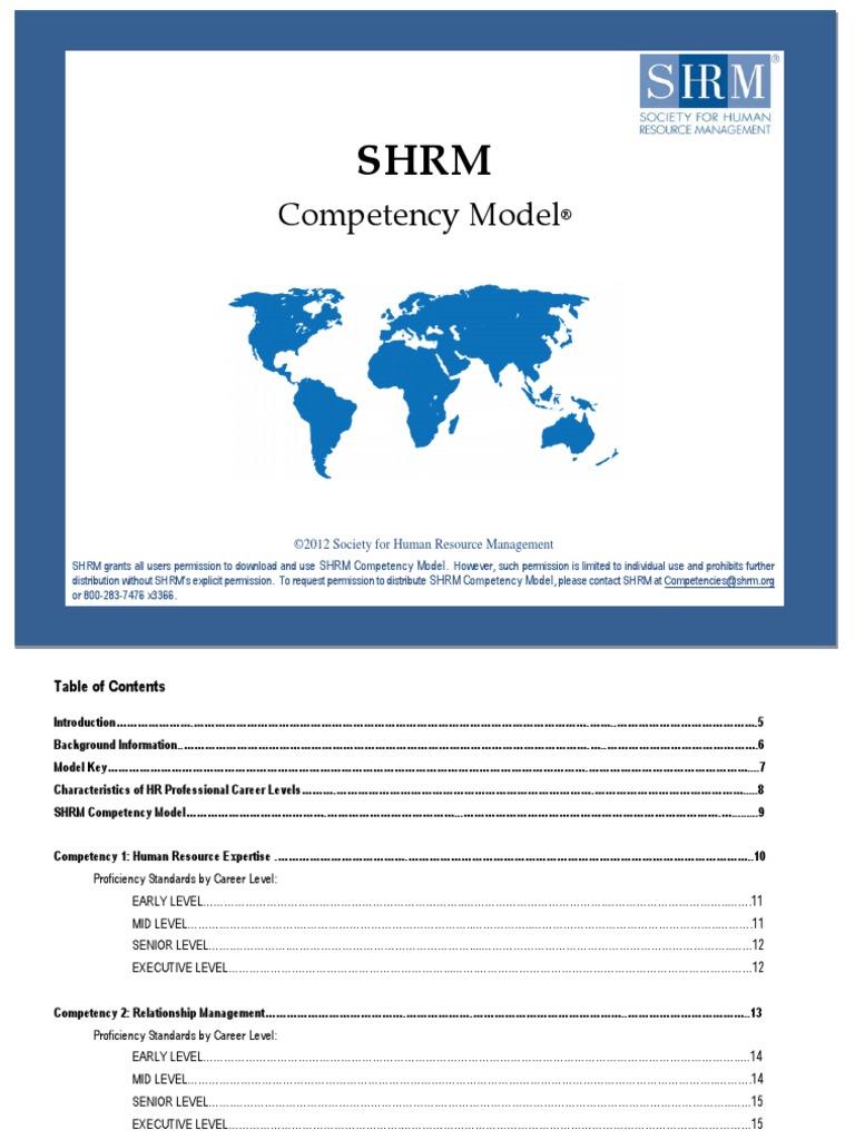 assessment) and serve as metrics of performance for the various elements of the competency model. SHRM began such an investigation in 2013.