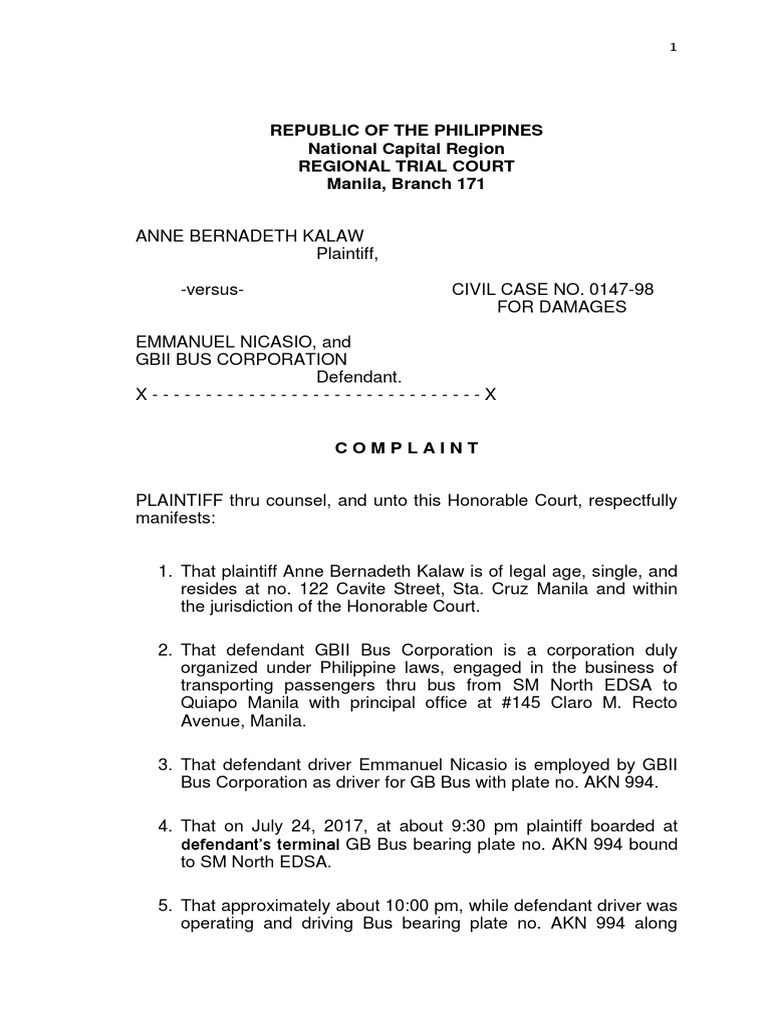 defendants GBII Bus Corporation., and Emmanuel Nicasio, jointly