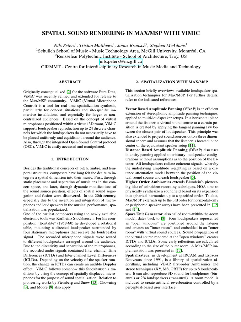 Currently, a ViMiC module renders one sound source. Max/MSP with Musical Applications. In Proceedings of