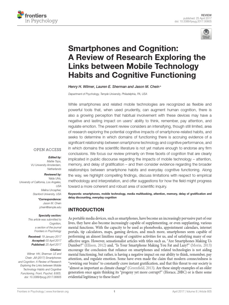 Smartphones and Cognition: A Review of Research Exploring The Links Between Mobile Technology Habits and Cognitive Functioning