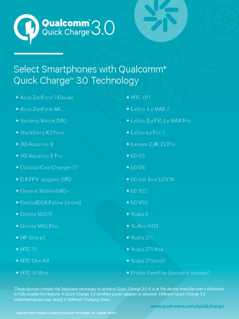 Qualcomm Quick Charge is a product of Qualcom Technologies, Inc. Updated 10/2017