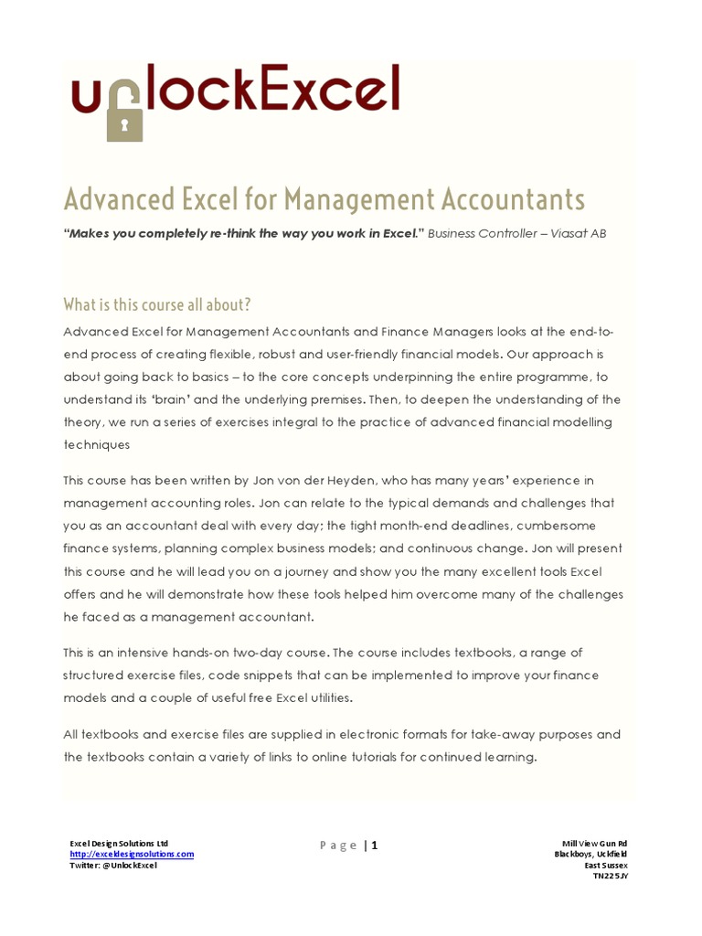 Advanced Excel for Management Accountants and Finance Managers looks at the end-to-