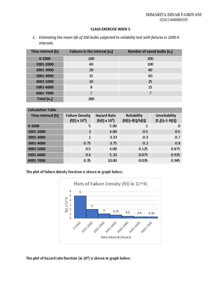 2. Make a table contains the time interval, failure density or f(t), hazard rate or h(t), reliability or