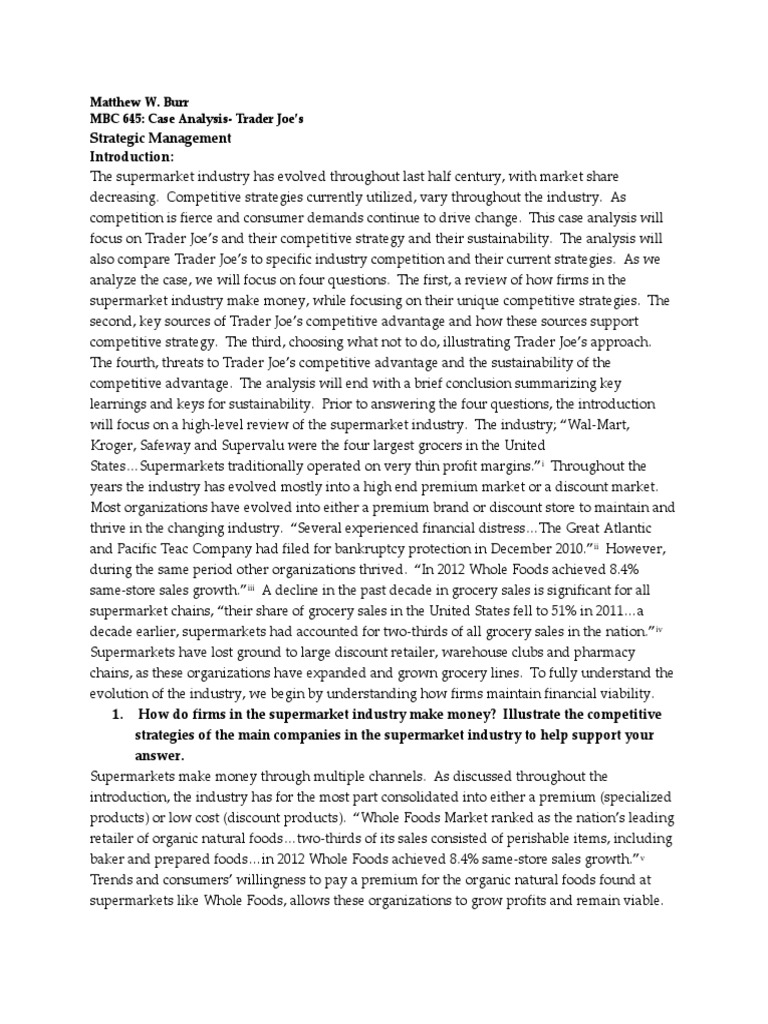also compare Trader Joes to specific industry competition and their current strategies. As we