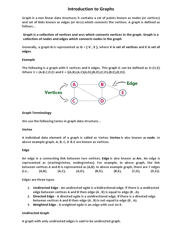 and set of links known as edges (or Arcs) which connects the vertices. A graph is defined as