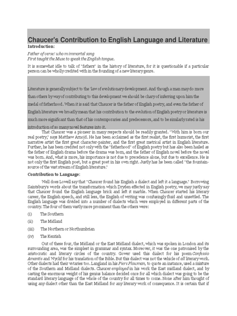 English literature we broadly mean that his contribution to the evolution of English poetry or literature is