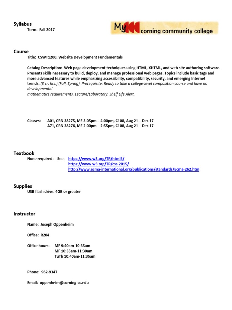 Catalog Description: Web page development techniques using HTML, XHTML, and web site authoring software.