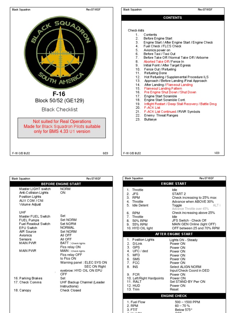 Black Checklist 21. F-ACK List Continued / RWR Symbols