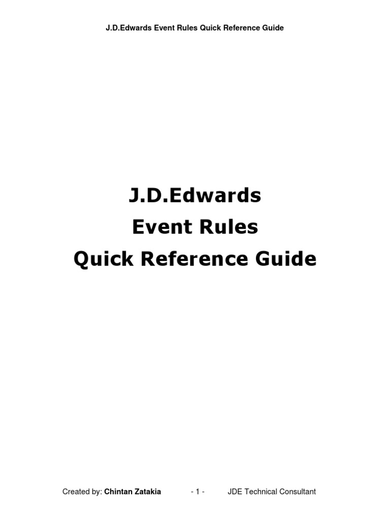 J.D.Edwards Event Rules Quick Reference Guide