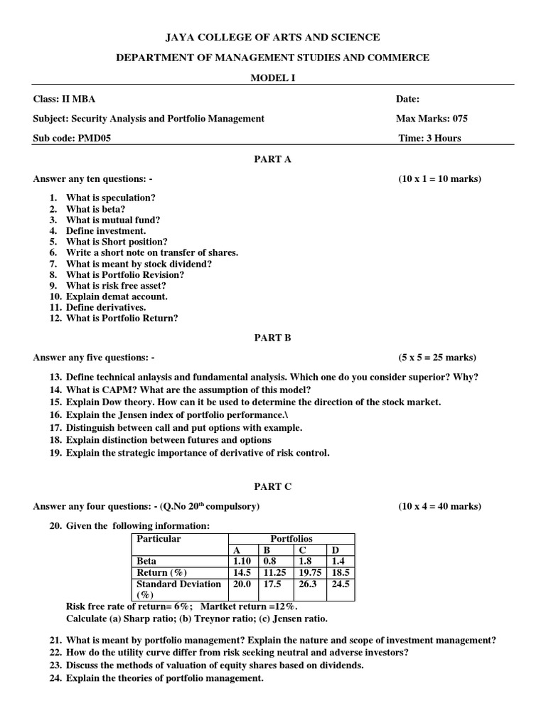Subject: Security Analysis and Portfolio Management Max Marks: 075