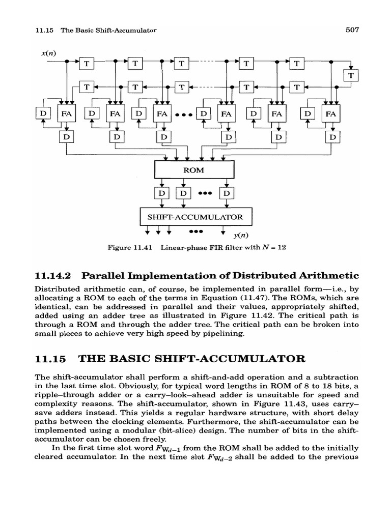 complexity reasons. The shift-accumulator, shown in Figure 11.43, uses carry-
