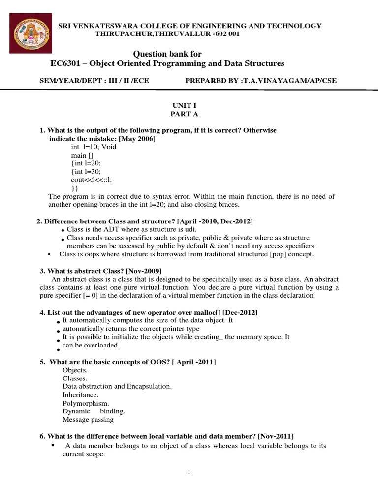 EC6301 Object Oriented Programming and Data Structures