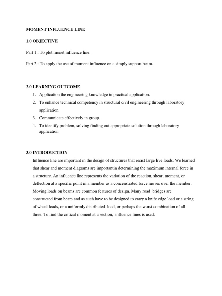 one end to another ( see diagram 1). From the diagram, moment influence line equation can be