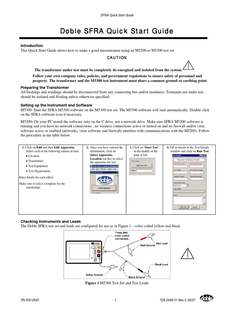 The Doble SFRA test set and leads are configured for use as in Figure 1 color coded yellow-red-black.