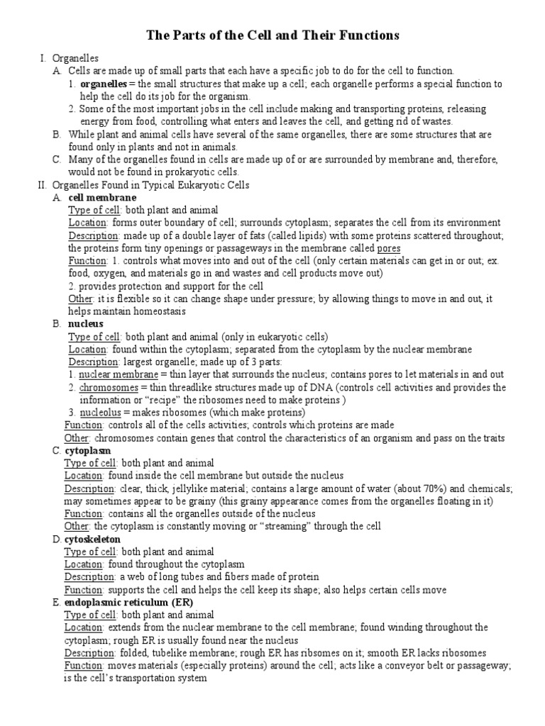 1. organelles = the small structures that make up a cell; each organelle performs a special function to