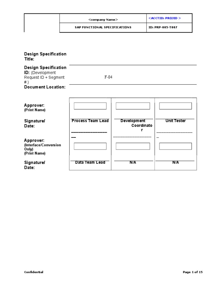 SAP FUNCTIONAL SPECIFICATIONS ID: PRP-005-T007