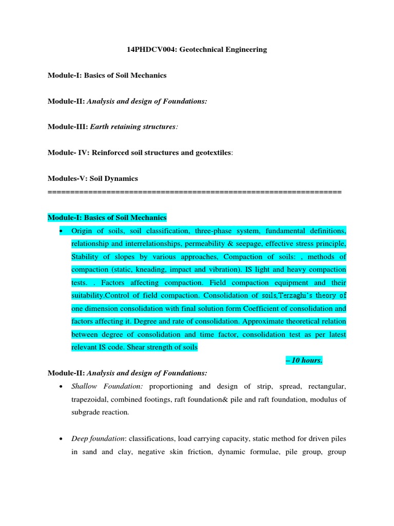 Stability of slopes by various approaches, Compaction of soils: , methods of