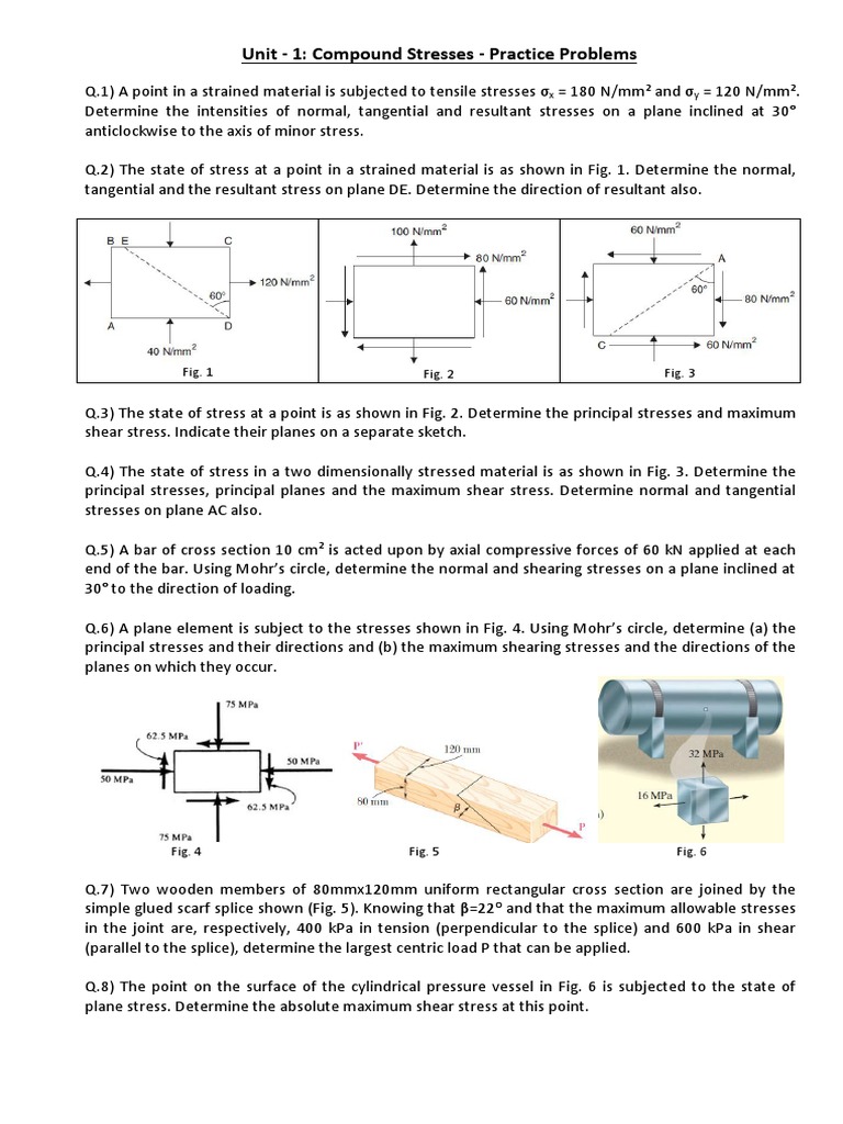 Unit - 1: Compound Stresses - Practice Problems