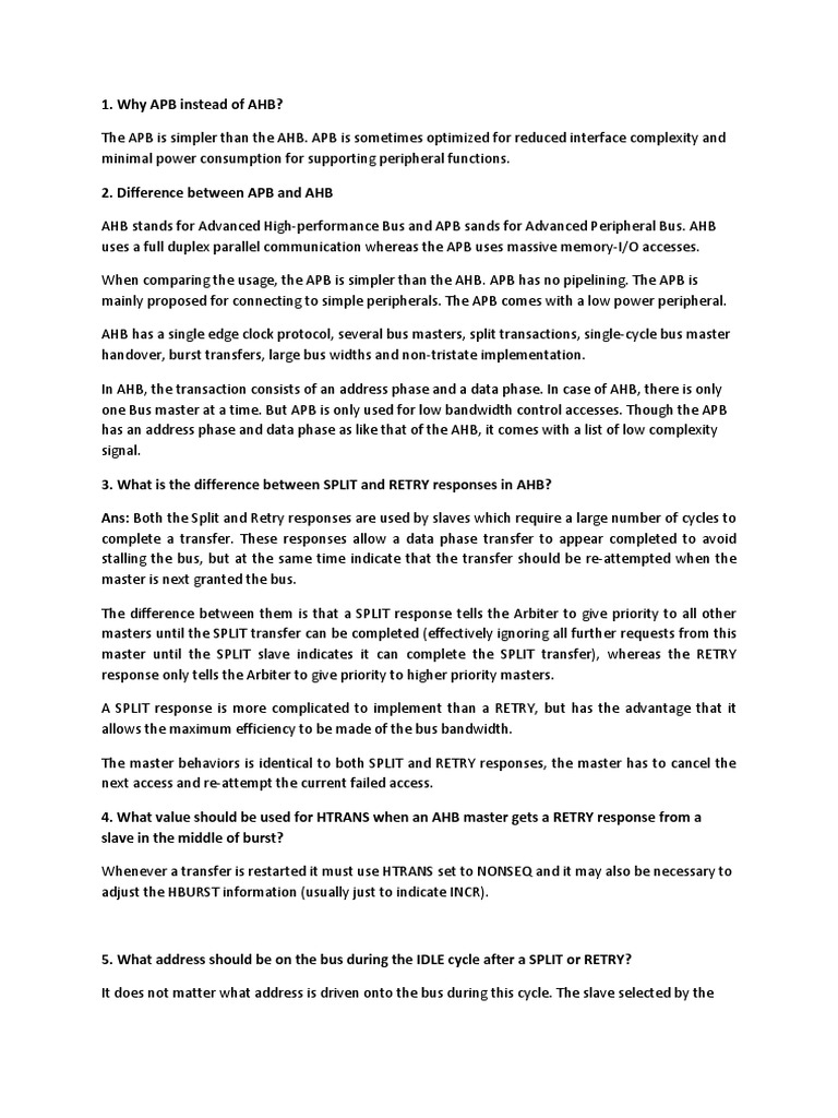 When comparing the usage, the APB is simpler than the AHB. APB has no pipelining. The APB is