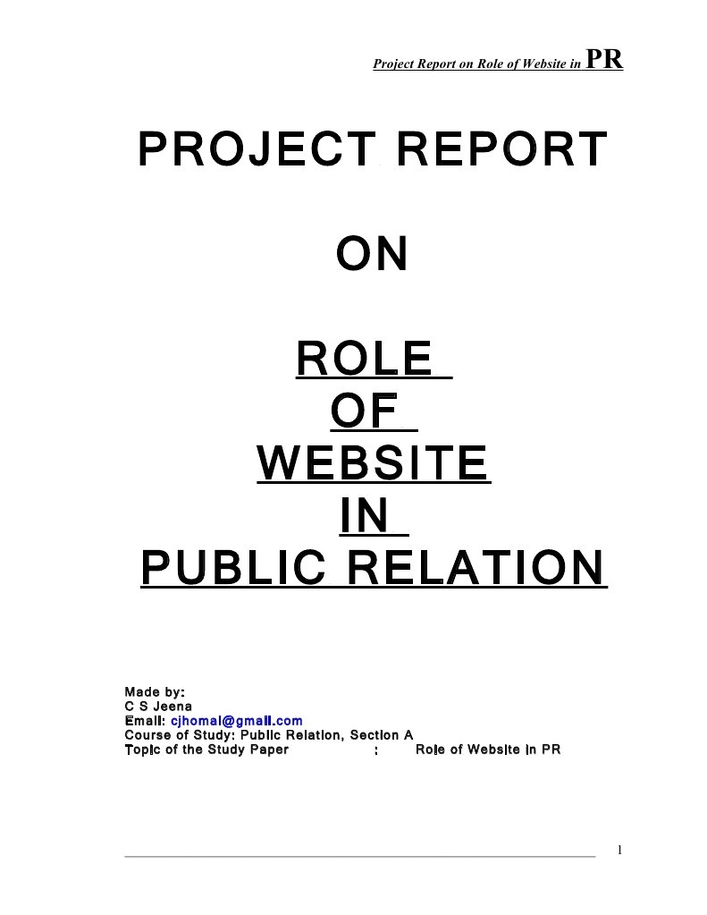 Project Report on Role of Website in PR