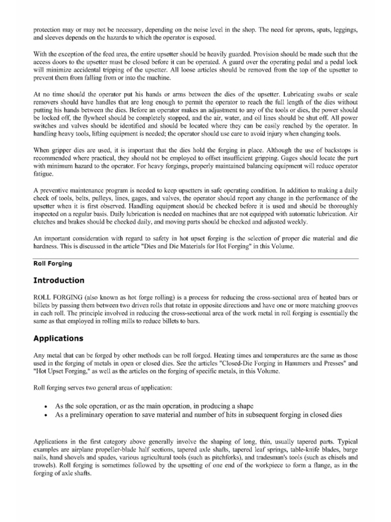 "Hot Upset Forging," as well as the articles on the forging of specific metals, in this Volume.
