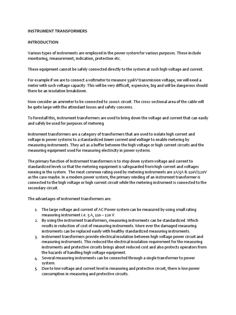 as the case maybe. In a modern power system, the primary winding of an instrument transformer is