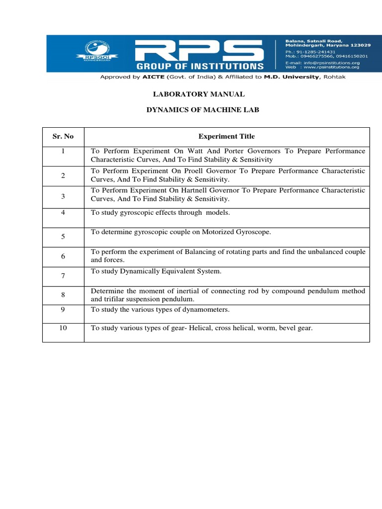 AIM:-To Perform Experiment On Watt And Porter Governors To Prepare Performance