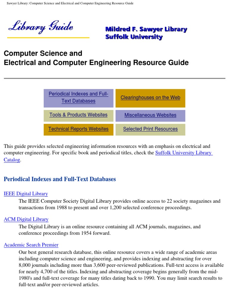 Sawyer Library: Computer Science and Electrical and Computer Engineering Resource Guide