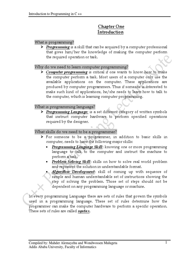 Course Title: Introduction to Programming / Fundamentals of Programming