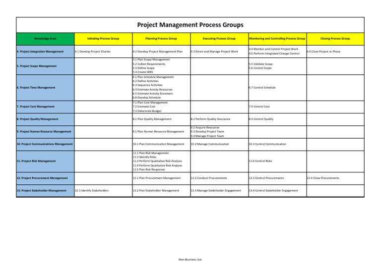 Knowledge Area Initiating Process Group Planning Process Group Executing Process Group Monitoring and Controlling Process Group Closing Process Group
