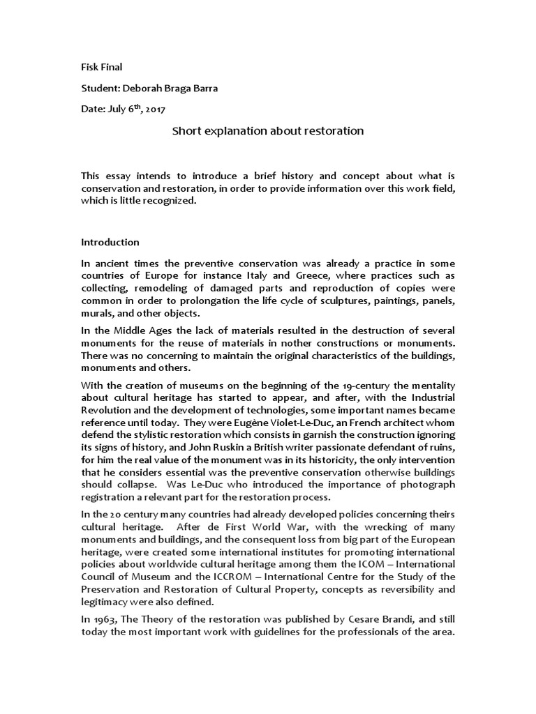 intervention becomes part of objects history, thus the process of restoration