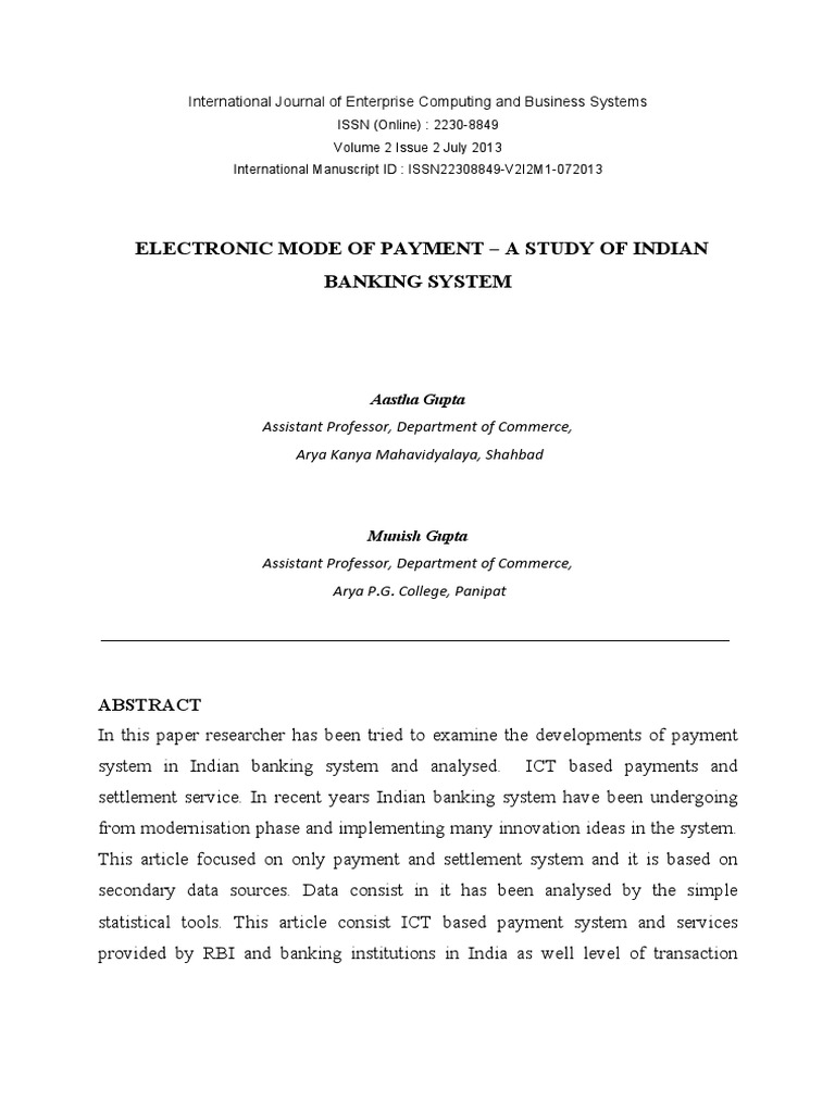 ELECTRONIC MODE OF PAYMENT A STUDY OF INDIAN