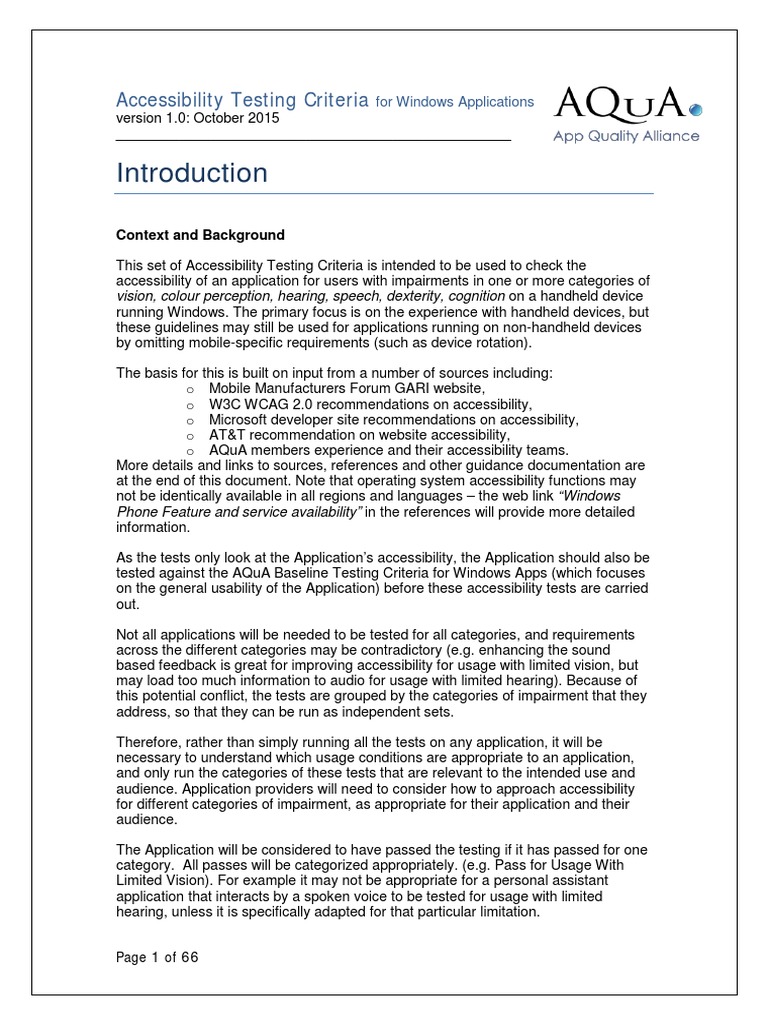 tested against the AQuA Baseline Testing Criteria for Windows Apps (which focuses
