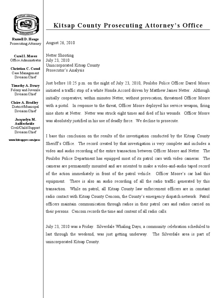 evening of July 23, 2010. He stopped Matthew Netter after developing a reasonable