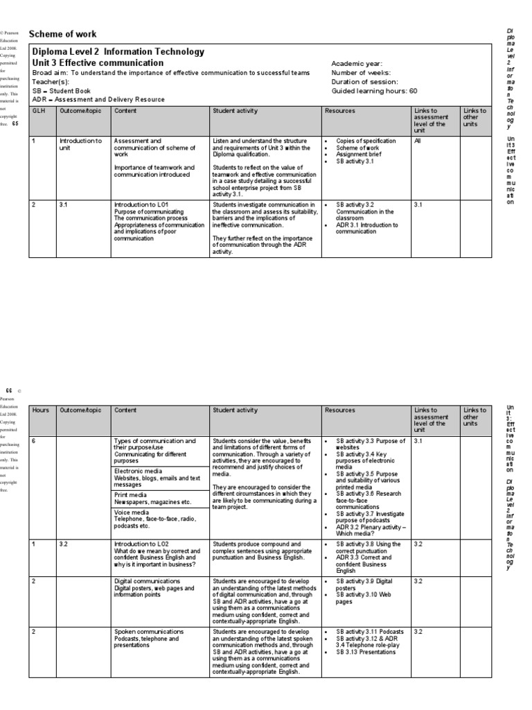 unit communication of scheme of and requirements of Unit 3 within the Scheme of work it 3