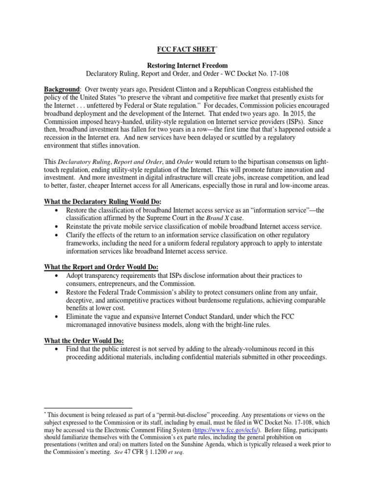 2. We take several actions in this Order to restore Internet freedom. First, we end utility-