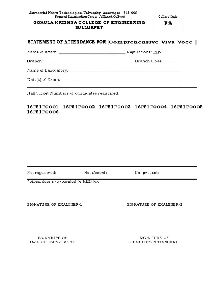STATEMENT OF ATTENDANCE FOR [Comprehensive Viva Voce ]