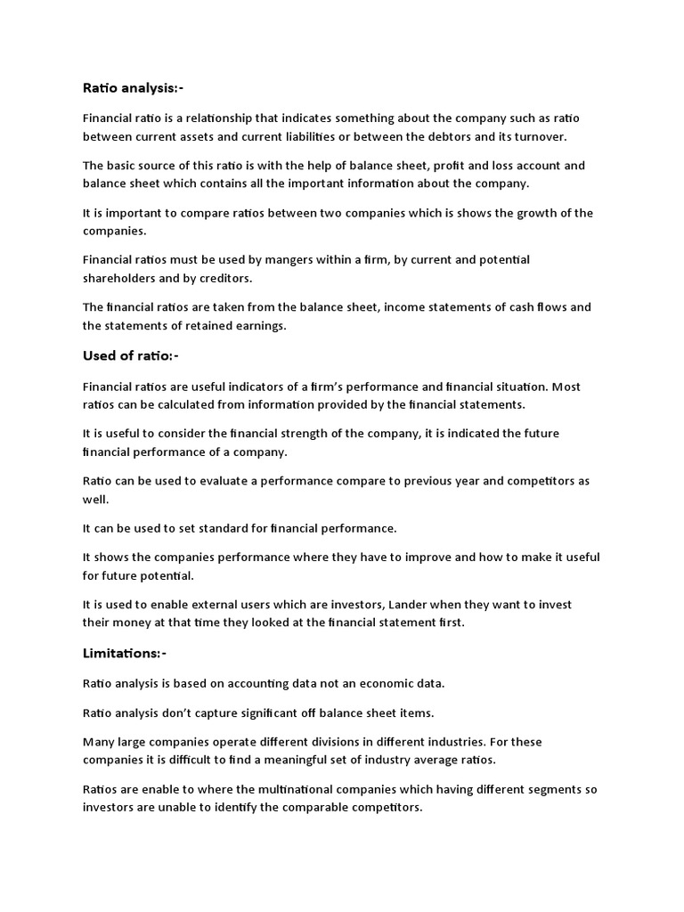 1]. Liquidity ratio:- it shows the ability of company to pay off its short terms debts