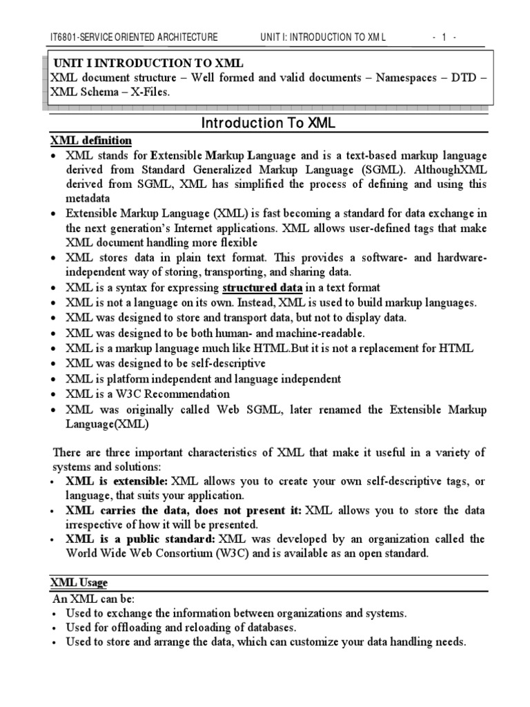 IT6801-SERVICE ORIENTED ARCHITECTURE UNIT I: INTRODUCTION TO XML - 2 -
