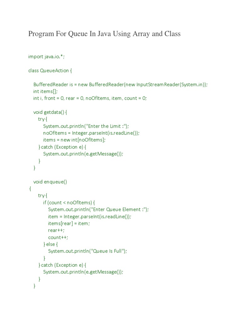 System.out.println("1.Enqueue\n2.Dequeue\n3.Display\n4.Exit\n");