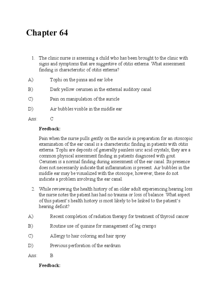 36. An older adult with a recent history of mixed hearing loss has been diagnosed