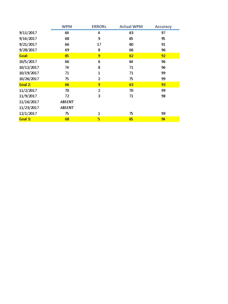 WPM ERRORs Actual WPM Accuracy