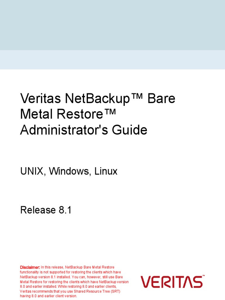Disclaimer: In this release, NetBackup Bare Metal Restore