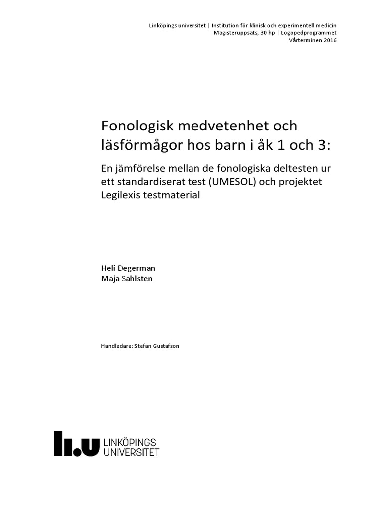 Underskning av lsfrmga hos barn i rskurs 1 och 3 genom testning inom sprkliga