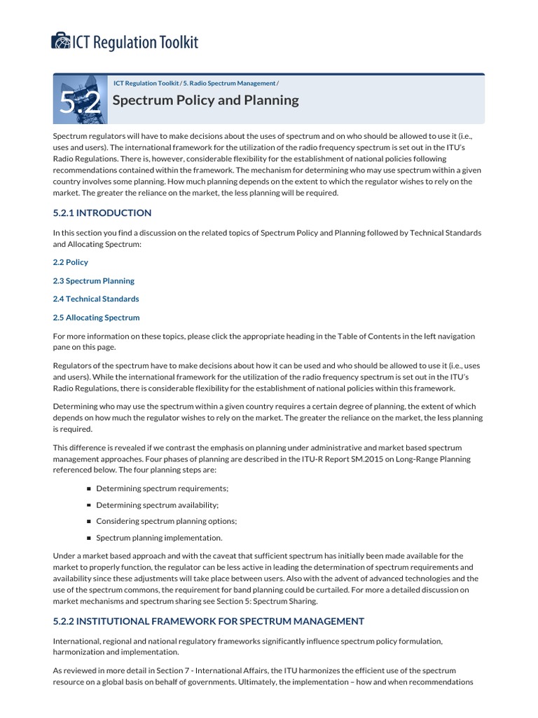 and users). While the international framework for the utilization of the radio frequency spectrum is set out in the ITUs