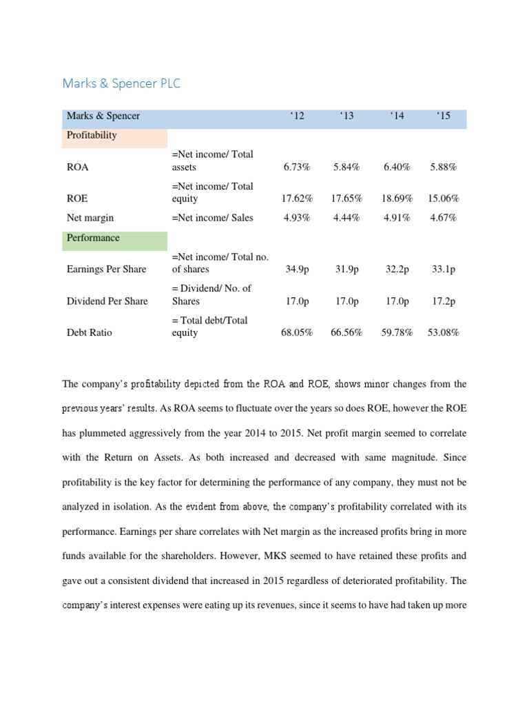 analyzed in isolation. As the evident from above, the companys profitability correlated with its